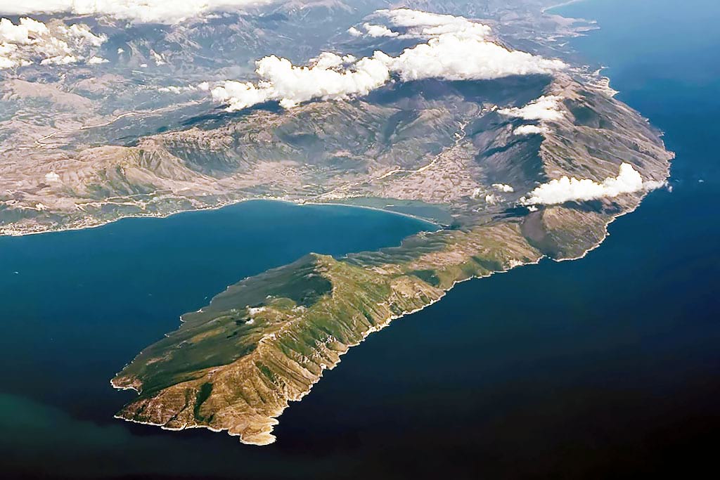 The Karaburun Peninsula is part of Albania’s only marine park, the Karaburun–Sazan Marine Park. It lies close to the city of Vlorë, between the Adriatic and Ionian Seas, and is known for its clear turquoise waters, rocky cliffs, sea caves, and quiet beaches surrounded by untouched nature.
