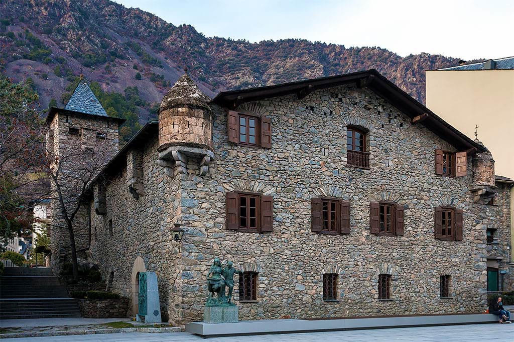The house has thick stone walls, small windows, and a traditional design that fits perfectly into the mountain landscape. Inside, you can see original meeting rooms, wooden furniture, and documents explaining how Andorra was governed in the past. Outside, there is a small terrace area with a short but beautiful view of the surrounding mountains. Most visitors spend 20–30 minutes here, or slightly longer if joining a guided tour.