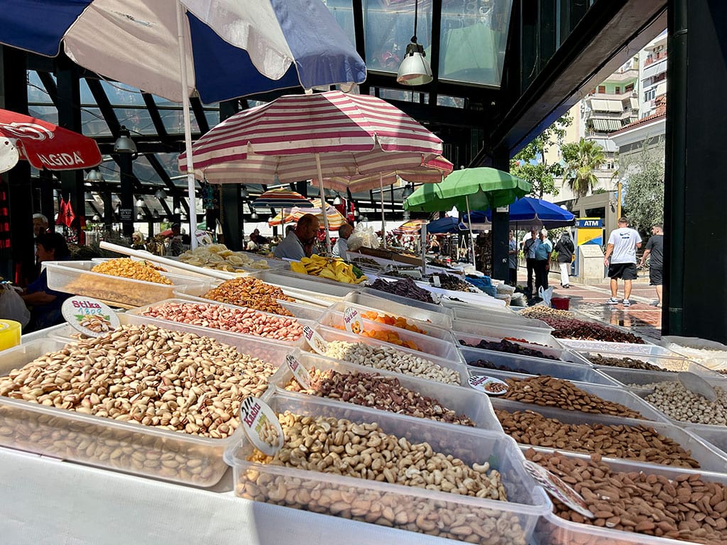 Pazari i Ri is a lively market area near the center. It has colorful buildings, fresh fruit and vegetables, cheese, spices, and local products. Around the market are many small restaurants and cafés.