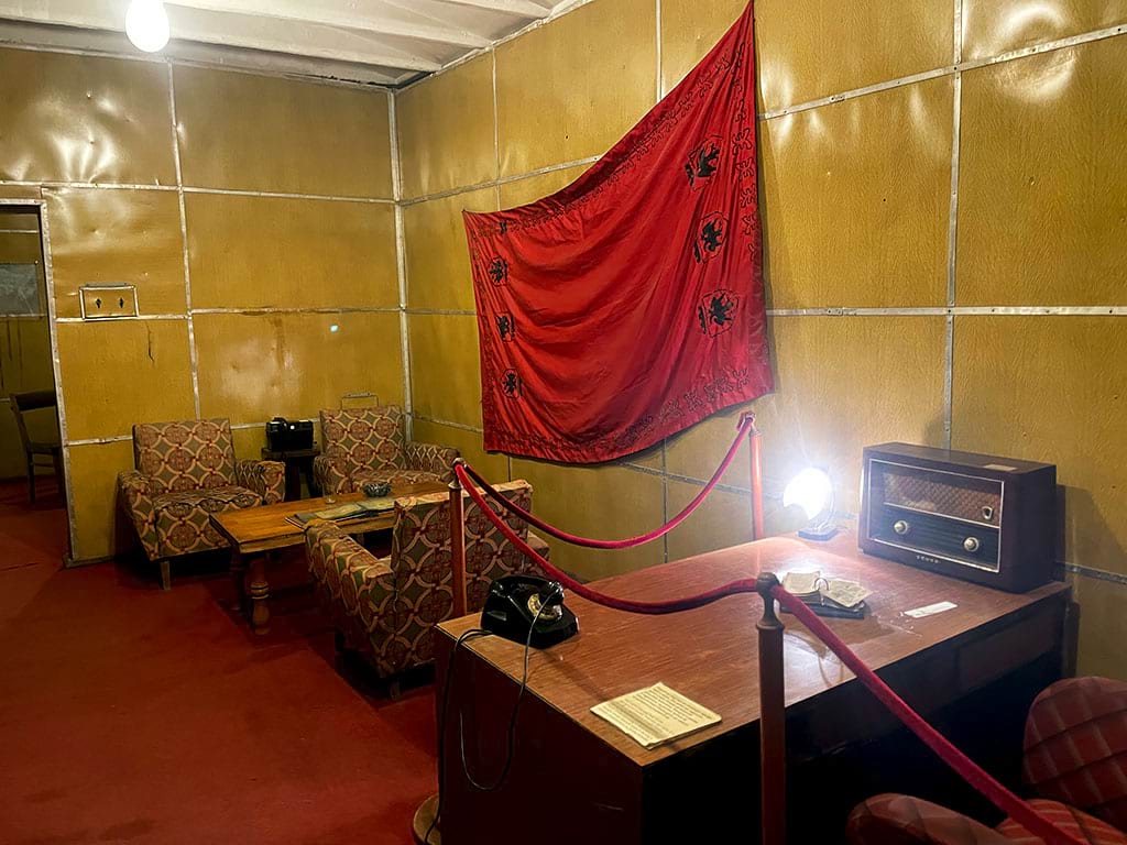 Bunk’Art 1 is a large underground bunker museum on the edge of Tirana. It was built in the early 1980s during the communist time of Enver Hoxha as a safe place for government and army leaders in case of war. The bunker has five floors, about 3,000 m² of space, and 106 rooms made of thick concrete.
