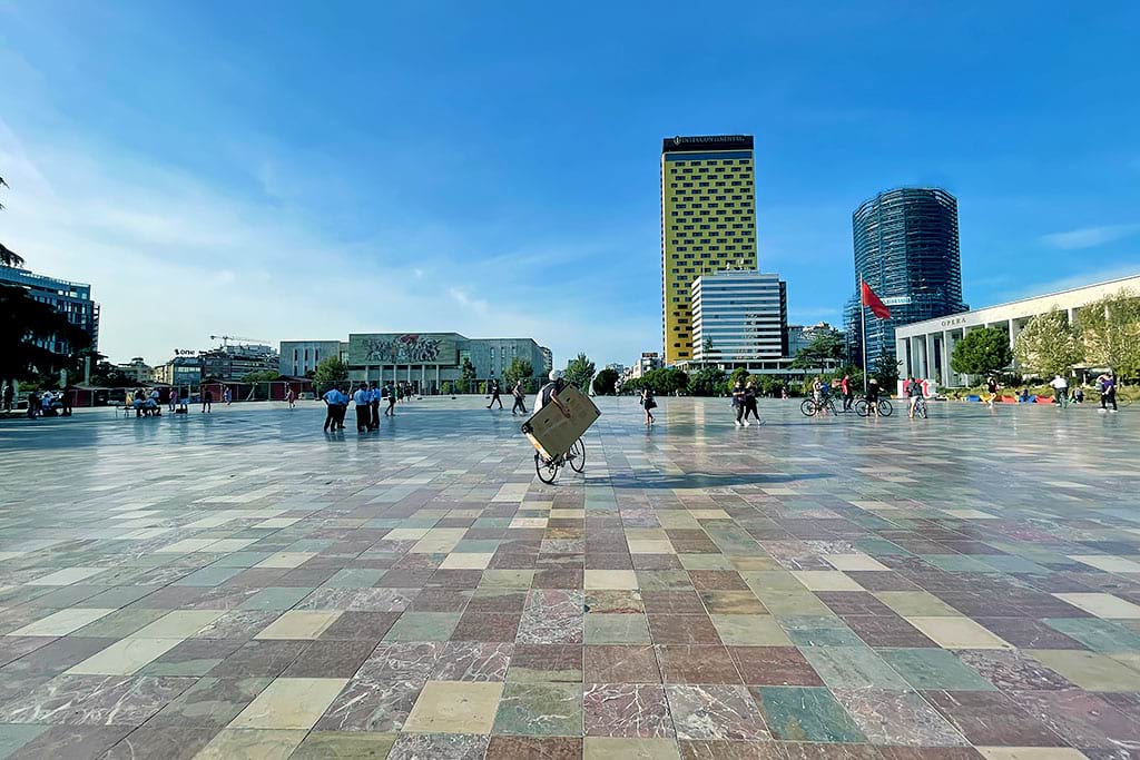 Skanderbeg Square is the main square in the center of Tirana and the heart of the city. It is named after Gjergj Kastrioti Skanderbeg, Albania’s national hero who fought against the Ottoman Empire in the 15th century. In the middle of the square stands a large equestrian statue of Skanderbeg, one of the most famous symbols of Albania.